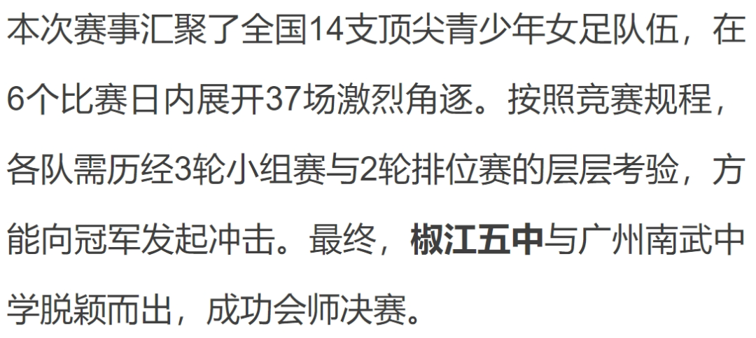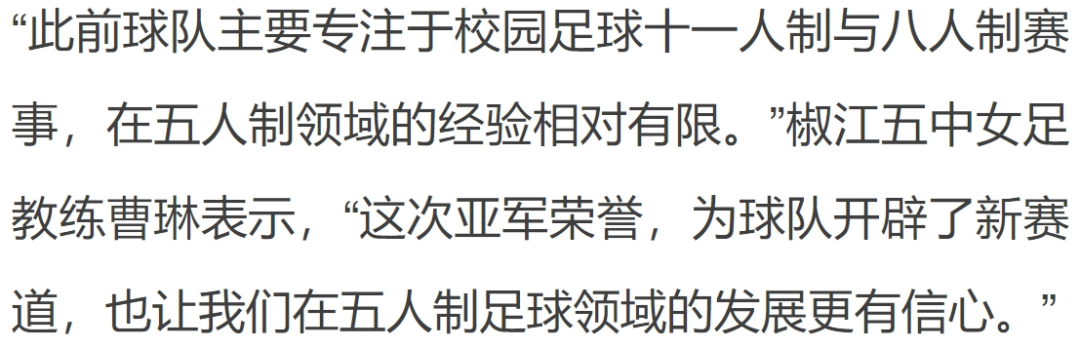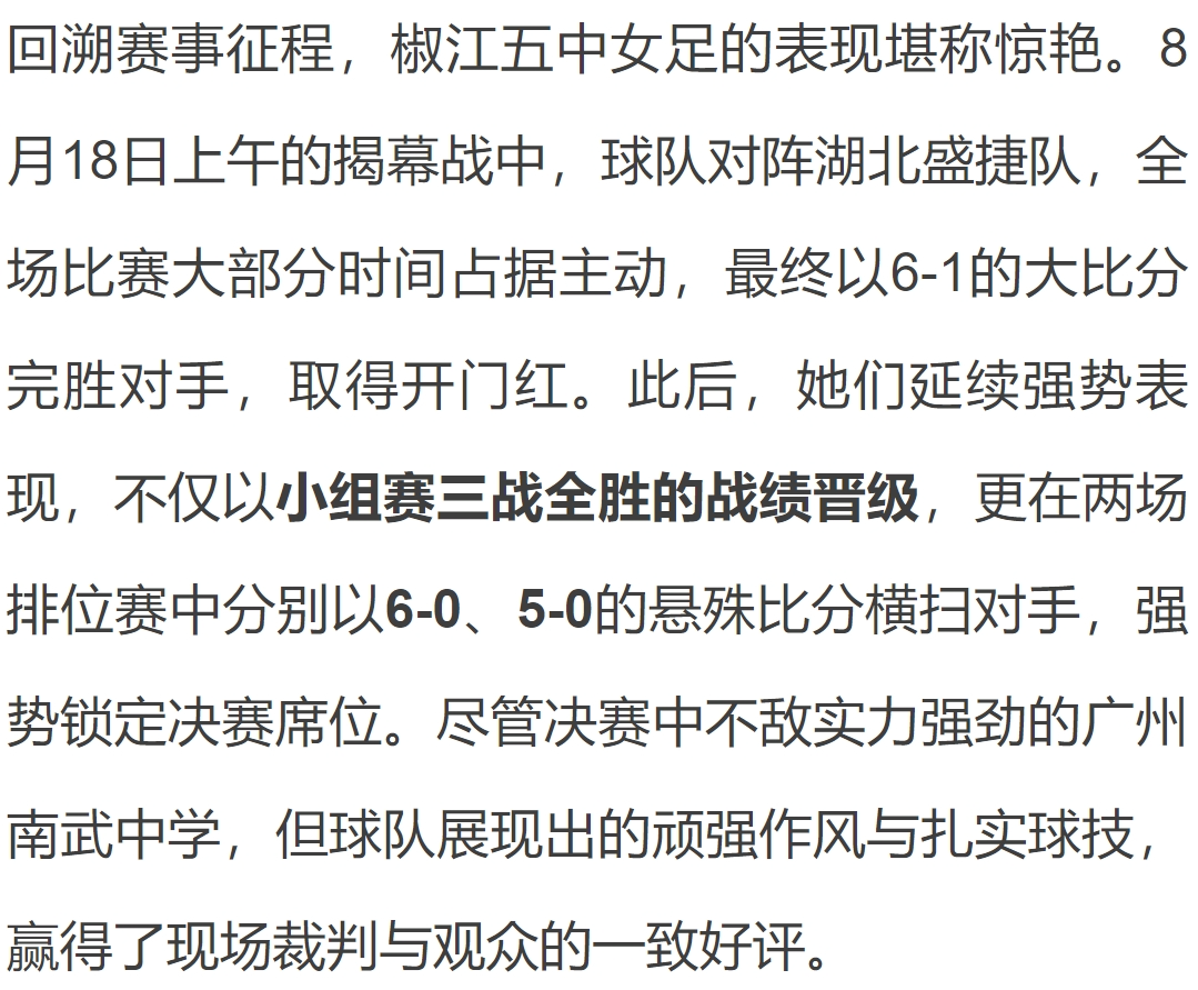 8月23日,2025全国五人制足球青少年锦标赛(女子U13)在浙江杭州临平体育中心体育馆圆满落幕。椒江区第五中学女子足球队一路过关斩将,最终斩获亚军,闪耀全国赛场。这是该校继2018年斩获全国青少年校园足球挑战赛(初中女子组)第六名后,再次在全国性赛事中突破自我,创造佳绩。SPORT赛场上的风采来 源:椒江教育小编:舒克 审 核 :杨懿 监制 :晨曦关注...